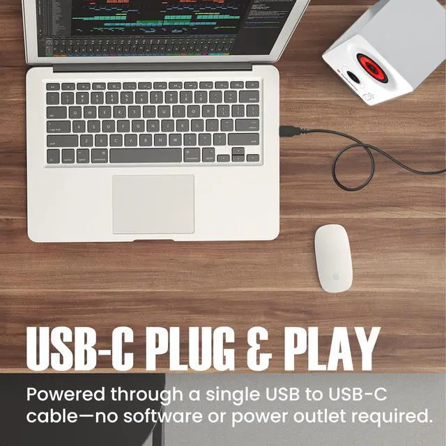 Clear, Powerful Stereo Sound Experience crisp, room-filling audio from dual 2" full-range drivers that deliver 6W RMS / 12W peak power. Perfect for everyday listeningwhether youre working, studying, or unwinding with your favorite playlists or videos. ^^ Plug-and-Play Simplicity Set up in seconds with USB-C plug & play for PC. No drivers, no hasslejust connect and enjoy. Includes a 1m USB-C cable and 3.5 mm AUX input for quick, flexible listening across devices. ^^ Compact Size, Clean Design Designed to fit any desk setup, these PC speakers feature a sleek matte black or white finish, simple LED indicator, and intuitive power and volume controls.