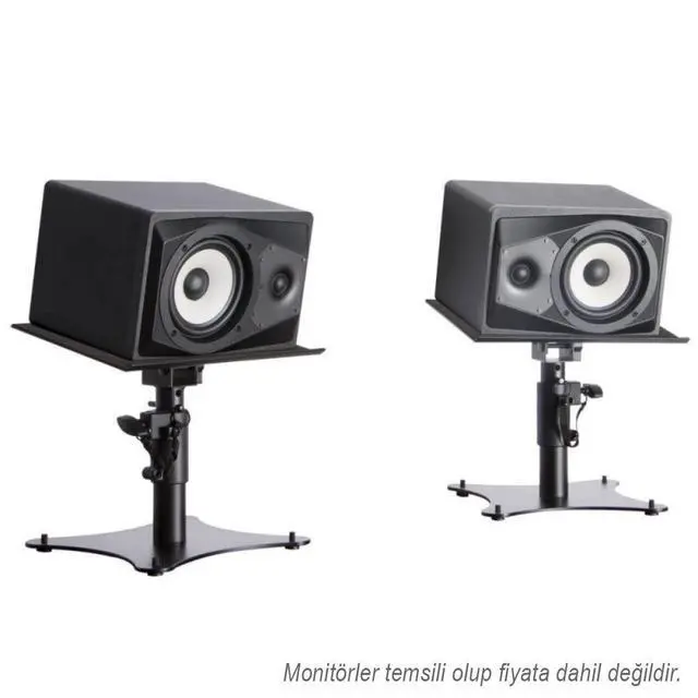 Perfect for mixing desks, this pair of our SMS4500-P Desktop Monitor Stands provides stable support for small speakers while reducing tabletop rumble and soundwave reflections. Adjustable height and platform angle facilitate precise speaker placement to optimize sound in a variety of spaces. Padding on the platforms protects speaker cabinets and rubber feet on the bases dampen vibrations.