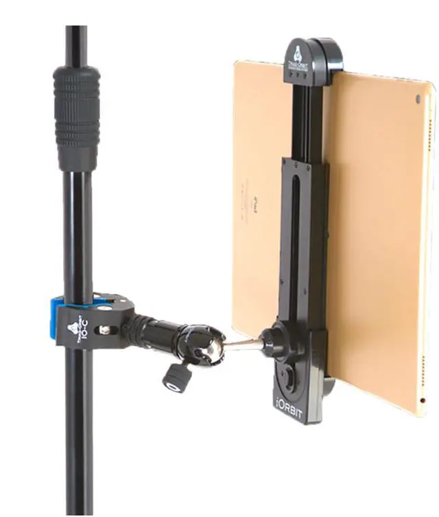 Stand Mount Your Gear with Total Flexibility Triad-Orbit's iOrbit stand adapter makes it easy to mount your tablet or smartphone to your mic stand. Equipped with a sturdy polymer frame that you can clamp down on in a range of widths, the iOrbit supports any tablet or smartphone model. When it comes to general flexibility, Sweetwater engineers are huge fans of Triad-Orbit stands, and the iOrbit is designed to attach to Triad-Orbit's snap-on connectors. If you're planning on using the iOrbit with a conventional mic stand, no need to worry. They've included an IO-C Quick Change Coupler so you can also attach it to standard 5/8" mic stand threading.
