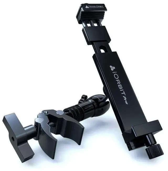 Stand Mount Your Device with Confidence Triad-Orbits iOrbit Pro makes mounting your tablet or smartphone to a mic stand or table surface a cinch, all while keeping your device safe and secure. The patented modular orbital support system offers exceptional adaptability and positioning capabilities; meanwhile, a 4-point lockdown adjustment mechanism enables optimum screen orientation without the risk of slippage. The revamped iO-C2 clamp further enhances adaptability and stability with advanced vice jaw technology. There is never a shortage of audio/visual projects happening here at GearNuts weve found the iOrbit Pro to be a reliable accessory for creating content, livestreaming, reading sheet music or lyrics, and beyond.