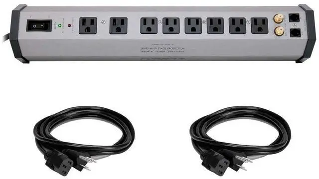 In addition, the Extreme Voltage Shutdown circuit automatically turns off the unit when it is fed 137 volts or higher, protecting itself and connected equipment from the extreme voltage. It comes with two Hosa Electrical Extension Cable is made with 18 AWG wiring and has a female IEC connector. Now you don't have to use extension cords to bring power to your IEC equipped gear. Box ContainsFurman PST-8 Power Station Home Theater Power Conditioner & Surge Protector - 8 Outlets, 2 Coax Pairs & Phone Line Protection3-Year Warranty (conditional on registration) Hosa Technology Extension Cable with IEC Female Connector (18 AWG, Black, 3')Limited Lifetime Warranty