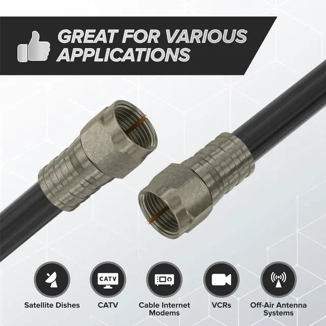 THE CIMPLE CO, A Family Company located in the USA, is proud to offer these high quality and durable coaxial crimp on type connectors, also known as coax fittings. F81 Connectors, using the F-Pin connection (standard on US Cable systems). Rated from 2MHz 3GHz, this ensures that the coupler will handle all of the signals for DIRECTV, Satellite Dish, other Satellite, CATV (including Comcast, Charter, Cox, and more), as well as Antennas, VCRs, Cable Internet Modems, and other digital and analog systems.