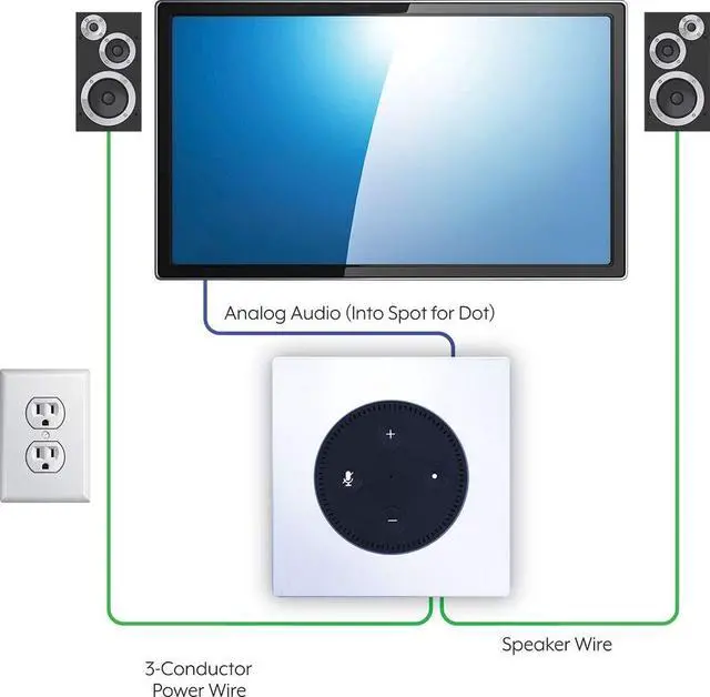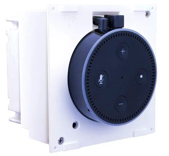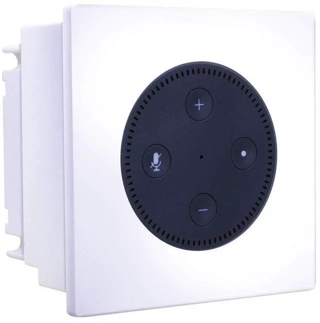 Vanco International's Spot for Dot is a patent pending high quality digital in-wall amplifier. It is an inexpensive yet elegant solution that powers speakers and/or connects to existing distributed audio systems. The Spot for Dot amplifier is made with a modern design in mind, perfect for any decor (can be flush mounted in wall or ceiling for a clean look with no exposed wiring). - Holds Echo Dot Gen 1 and 2 - In-wall amplifier that is powered and controlled by the Echo Dot - Add voice control of smart devices and other functionality - Can be used with almost any in-wall, in-ceiling, or in-room speaker - Supports multiple zones of audio without the need to run wires back to a central location - Vertical in-wall design improves the pickup and responsiveness of the microphone in an Echo - Can support up to 4 speakers being connected through a single amp - Auxiliary audio input to run from another source - High quality stereo sound for two speakers - Option to bridge up to four speakers - 25 Watts x 2 Channels 8 Ohm - 40 Watts x 2 Channels 4 Ohm - 110-240 V 50/60Hz - White and almond faceplates included - Echo Dot sold separately