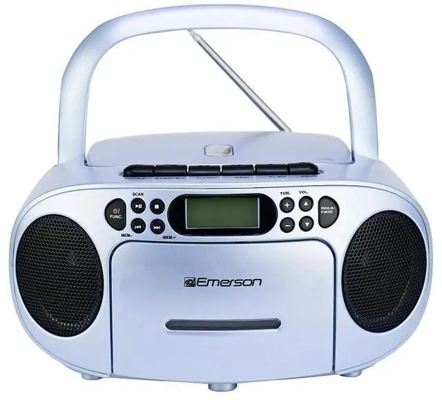 ALL-IN-ONE PORTABLE CD/CASSETTE PLAYER BOOMBOX: Discover the Emerson Portable CD/Cassette Player Boom box, featuring a top-loading CD player, cassette player, tape recorder, and AM/FM radio. Ideal for home, travel, outdoor & indoor use with a convenient carrying handle for easy portability. ^^ DIGITAL AM/FM STEREO RADIO WITH BEST RECEPTION: Equipped with advanced PLL stereo technology, this boom box provides superior AM/FM radio with longest range reception for clear and uninterrupted broadcasts, ensuring you always catch your favorite radio programs. ^^ MP3 & 3.5MM