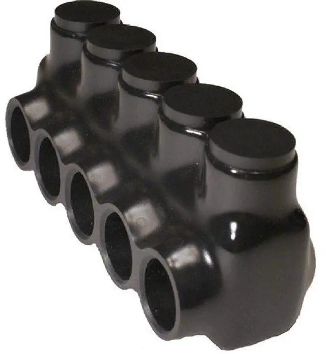 Morris Products Black Insulated Multi-Cable ConnectorSimplify cable splicing and tapping applications with this black insulated multi-cable connector from Morris Products. The single-side entry features wires that enter the same side of the connector and insulation made from rugged high-dielectric rubber and vinyl coating. Each multi-cable connector is pre-filled with oxide inhibitor and plugs are marked with connector max wire size for simplified identification. Each 600-volt electrical power connector offers one wire per terminal and is 6061-T6 Aluminum CU9AL Dual Rated for use with aluminum and copper wires. Find easy re-entry for inspection, changes and troubleshooting with this must-have for your electricians tool box.
