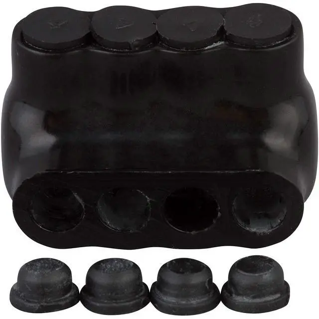 Power Connector- Temperature Range: -49 to 194 Degrees F- ANSI C 119.4 and cULus Listed Through 750MCM- 600 Volt- Pre-Filled with Oxide Inhibitor- High-Dielectric Rubber/Vinyl CoatingPackage Includes: - 1 x Black Insulated Multi-Cable ConnectorScroll up & click 'ADD TO CART' to get yours