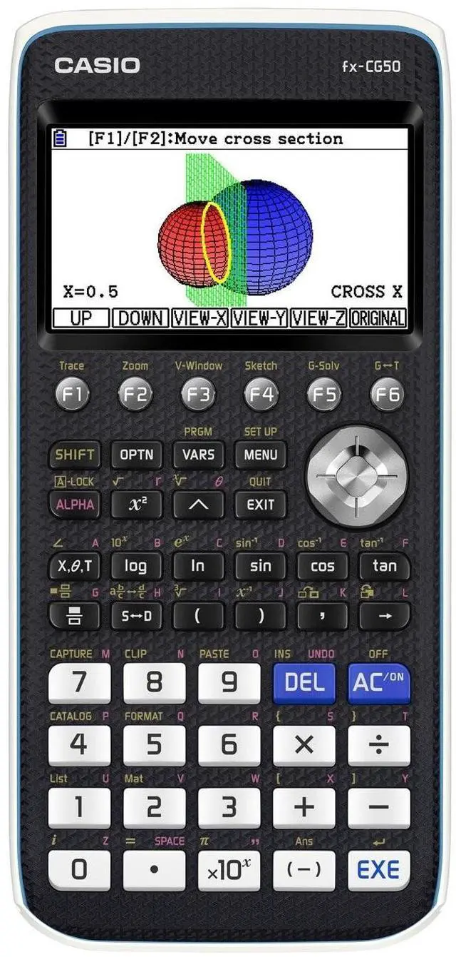 The fx-CG50 brings maths to life with the next generation of graphing calculator technologies, including high-resolution colour display with natural textbook display, innovative picture plot function enabling analysis of images and video, and an extensive range of graphing functions. Picture Plot enables users to create their own graphs over pictures displayed on the colour LCD. The fx-CG50 comes with over 50 types of colour pictures that users can create graphs over, such as a picture of the parabola or jets from a water fountain and an image sequence of a clocks pendulum movement.