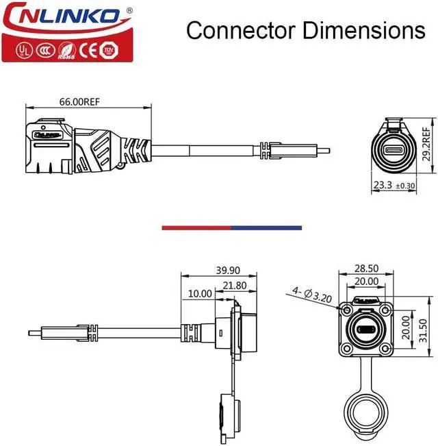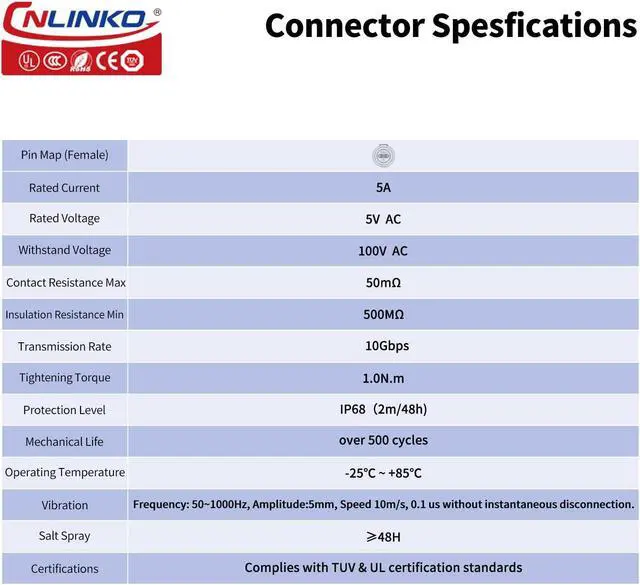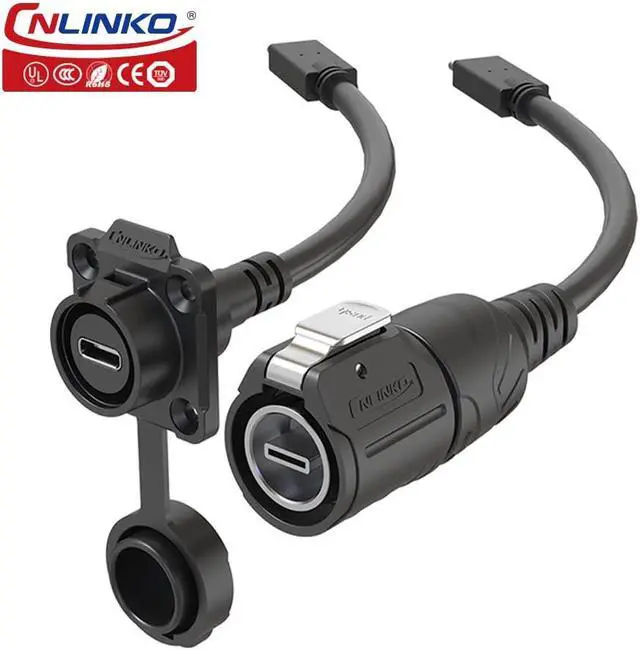 CNLINKO LP-16 Type-C 3.1 Industrial Waterproof Connector IP68 Circular Connector Quick Plugging Aviation Connector Fast Release High-Speed Data Transmission Connector with 1 Meter Cable