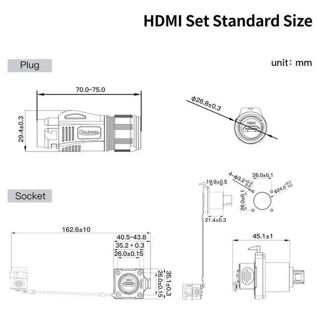 Connectors Set: It includes HDMI male plug features with 40 inches waterproof 4K HD cables and HDMI Panel Mount Receptacles Socket. Designed with intuitive plug/unplug mechanism ensures a hassle-free experience while maintaining a stable connection.