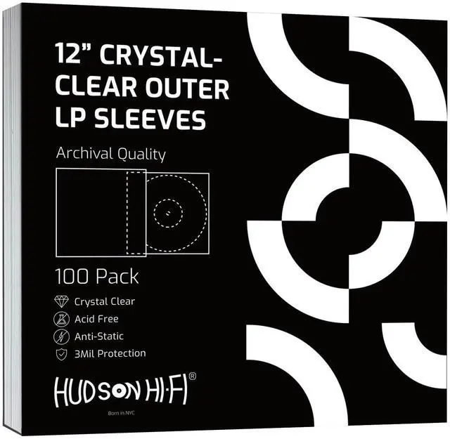 Hudson Hi-Fi Vinyl Record Outer Sleeves Covers - Premium Clear Vinyl Record Sleeve 100-Pack - Protect Your LP Albums from Scratches, Dirt & Dust - 3mm Thick No-Acid Exterior Disc Cover