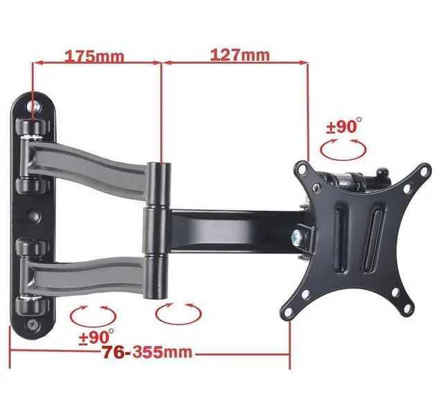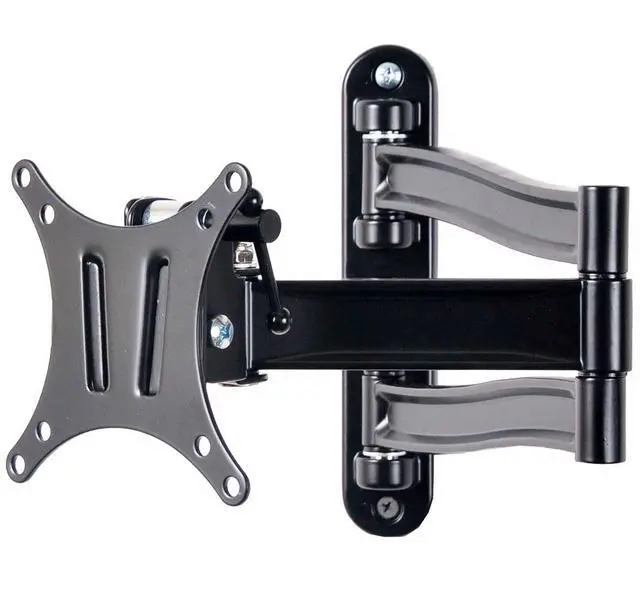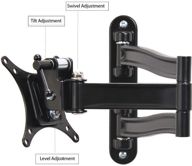 This adjustable articulating arm swing LCD TV monitor wall mount can extend out up to 14 inch, and folds flat against the wall. Aluminum alloy construction supports LCD monitor up to 33 lbs. Its classic black finish, 3 pivot points provides 0-20 degrees forward tilt, 180 degree swivel, and max 14 inch extends for virtually limitless adjustment. The VESA plate can be taken off to attach the display for easy installation. This two-link arm design offer elegantly look for offices, conference rooms, merchandising displays, hotel rooms or any room in the house.