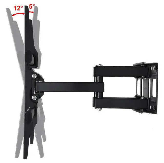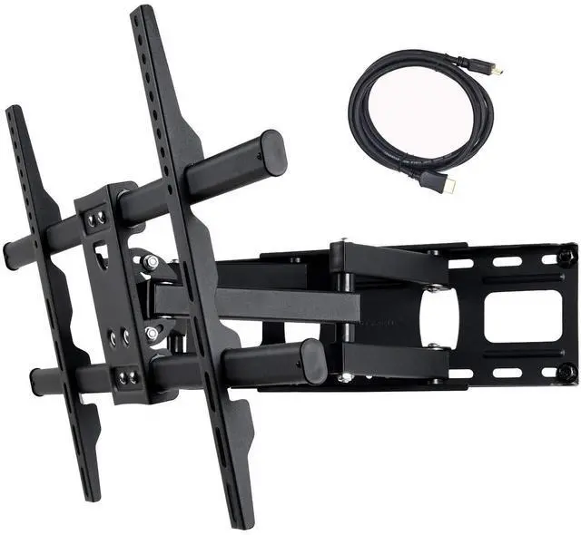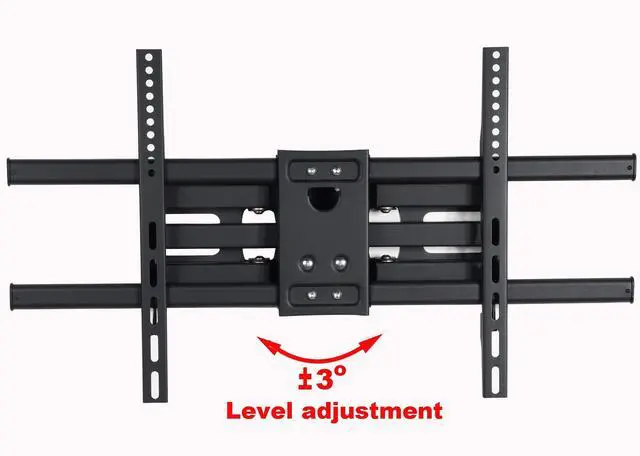 Fits 37" 40" 42" 46" 47" 50" 52" 55" 58" 60" 62" 63" 65" 70" 75" LCD LED Plasma display ^^ Supports mounting hole pattern 150x100 200x200 300x300 300x200 400x200 400x300 400x400 600x400 684x300 684x400mm ^^ Supports display up to 125 lbs; Adjustable tilt forward 12 and backward 12 degrees and swivel 160 degrees side-to-side for comfortable viewing angle ^^ Arm fold less than 3" or extend 14" from wall; +/-3 degrees Post-installation level adjustment allows the TV to perfectly level ^^ Fit 16 inch apart wood studs; HDMI cable and standard mounting screws included