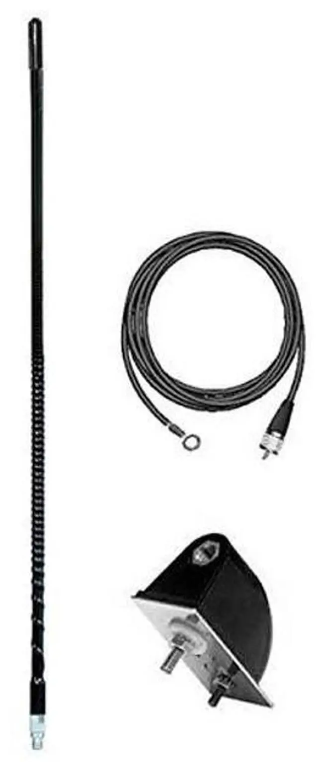 • Kit Includes: 3' black antenna, M-2 Side Mount, 17' Coax feedline w/PL259 Connector, Microphone Hanger