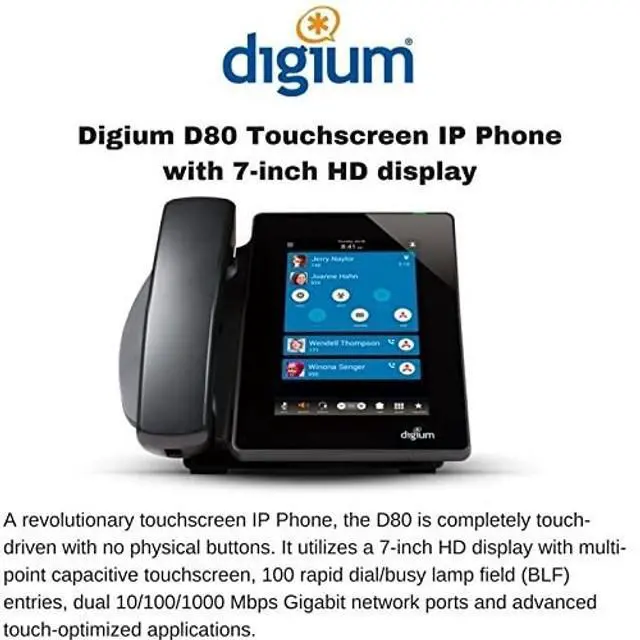Digium D80 IP Phone with HD Voice, Gigabit, 7.0 Inch Color Display, Capacitive Touch