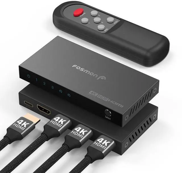 [Effortless Source Switching] Effortlessly toggle between 3 HDMI sources on 1 display with our Fosmon 4K HDMI switch. No delays, no hassle. Enjoy 4K@60Hz resolution via 18Gbps transmission for pristine quality. ^^ [Power and Space Efficient] Seamlessly switch between HDMI sources with one button. Use the provided USB-C cable for reliable power. For best results, use a 5V USB adapter (not included). Keep HDMI cables under 5m each for optimal performance. ^^ [Smooth Gaming Experience] Experience stunning 4K quality, HDR, and HDCP 2.2 support for seamless compatibility. Switch between auto/manual mode effortlessly to avoid accidental input changes.