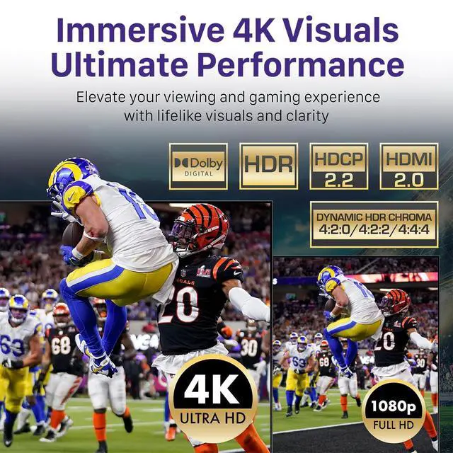 Enjoy lifelike visuals and enhanced gaming. ^^ [Durable Design with Wide Compatibility] Supports multiple input and output devices using HDMI 2.0 or lower.