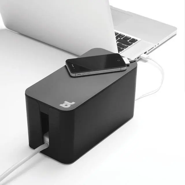 Tackling cable clusters atop your desk is what Cable Box Mini was made for. With a four-socket surge protector included, you can plug chargers, routers, adapters and small hubs into the Cable Box Mini. Simply tuck the associated jumble of cables into the box and close the lid to keep your desktop looking neat as a pin. Your accessory cables will always remain tidy and dust-free inside the Cable Box Mini. The box is constructed from high-density, fire retardant plastic and comes in Black, White, Blue, Green, Orange, Pink and Yellow.