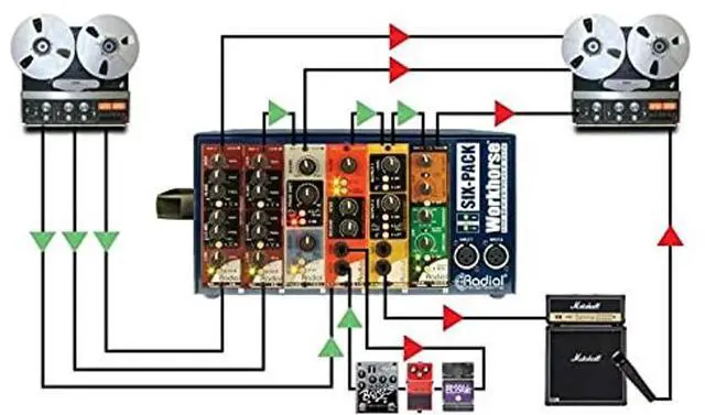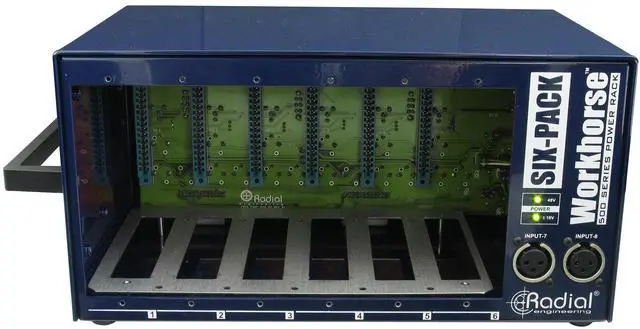 Glance: Keep your 500-series modules mobile Customize your workflow Durable all-metal construction for durability Keep your 500-series modules mobile The Radial Sixpack lets you keep your 500-series module where you want to. Not being tied to a rack means you can