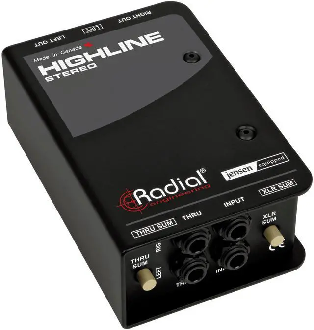 The Radial Engineering Highline Stereo is a two-channel passive line isolator meticulously designed to connect guitar and amp modelers directly to mixers for both live performances and studio recordings. By incorporating premium Jensen 1:1 transformers, the Highline Stereo ensures that your signal maintains its full integrity, delivering pristine audio without any added noise or distortion. This design not only preserves the original tone but also provides galvanic isolation, effectively eliminating ground loop hums and safeguarding your equipment from potential issues like phantom power.