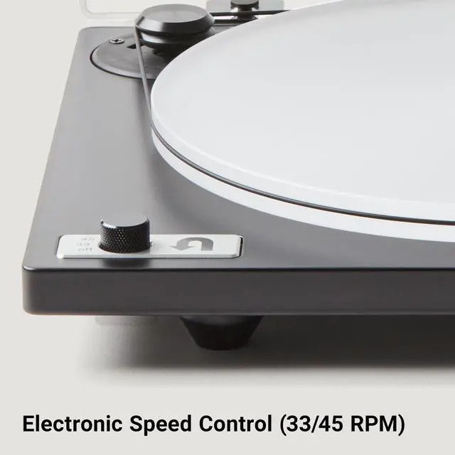 Electronic 33/45 RPM speed control lets you change speeds with the turn of a knob. An advanced motor controller boosts performance and speed accuracy, and our all-new seamless silicone belt eliminates motor noise