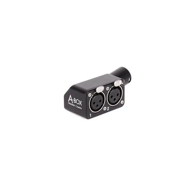 A-Box (Sony Venice) adapts the single 5 pin XLR on the side of the Venice camera body, to two standard 3 pin XLRs (female). The A-Box is easy to install and remove and is designed to fit flush with the shape of the Sony Venice without blocking air flow. Phantom power can be enabled on camera and the A-Box will pass it through to the microphones. Highest quality professional grade connectors.