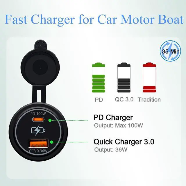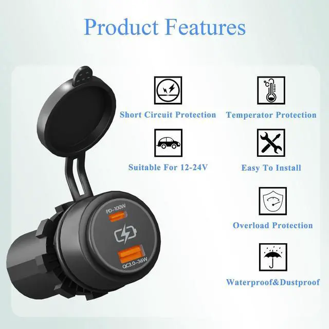 It supports simultaneous high-speed charging for two devices and features built-in intelligent safeguardsincluding protection against over-current, over-charge, over-temperature, and short circuit. With an IP65 waterproof rating, a heat-resistant ABS casing (rated from -25C to 80C), and a clear power indicator, this charger delivers efficient and reliable performance wherever you go.