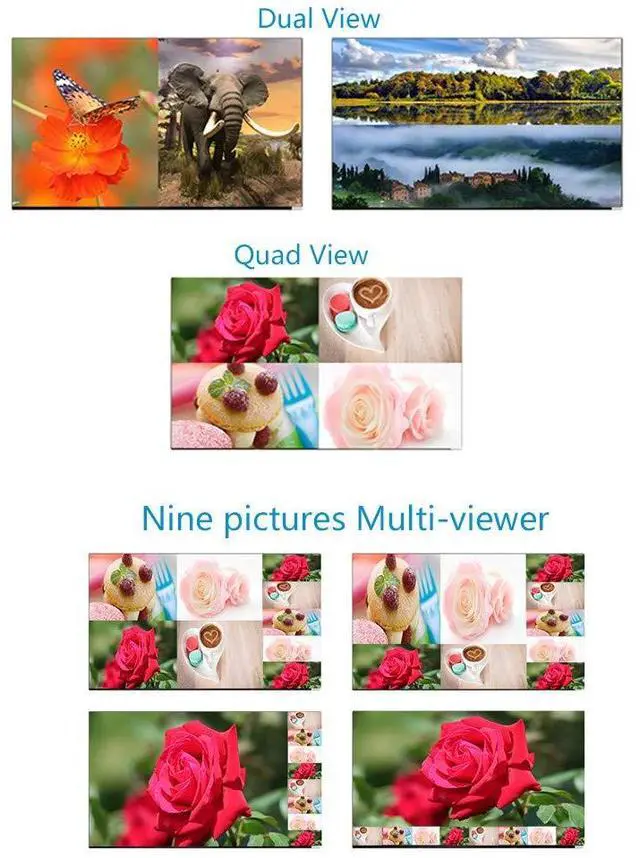 4K HDMI 9x1 Multi-viewer is with nine HDMI inputs and one HDMI output. Seamless switch eight HDMI sources into one HDMI-ready display in 9 different multi-views at resolution up to 4k 60HZ.