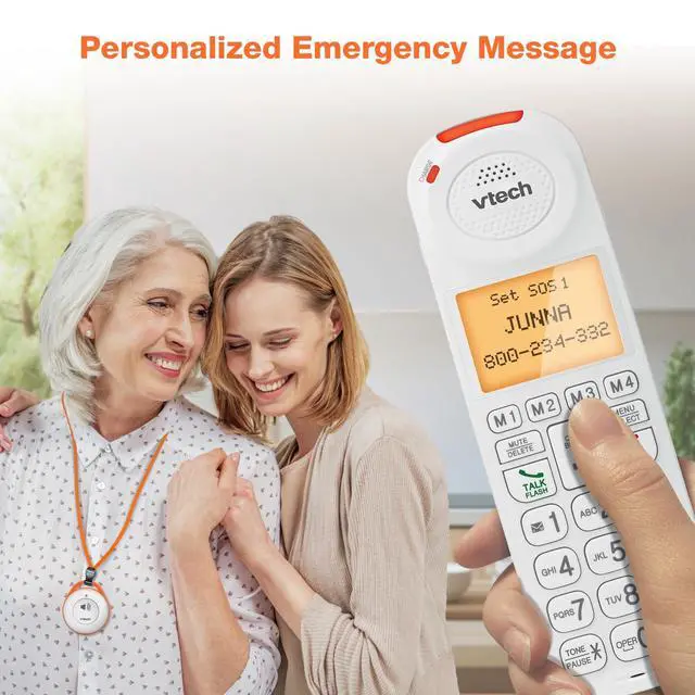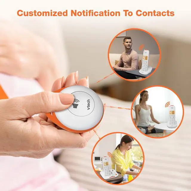 Press a button and call for help with the VTech Sn7022 wearable home Sos Pendant. Once the button is pressed, the handset and base speakerphones will dial up to 5 numbers in sequence, allowing you to reach loved ones even if you can't reach the phone. This accessory device was designed for use with the careline cordless amplified sound phone system. Add it to your senior-friendly phone system for an extra sense of peace of mind while at home. The VTech Sn7022 wearable home Sos Pendant is water resistant, meaning it's splash proof.