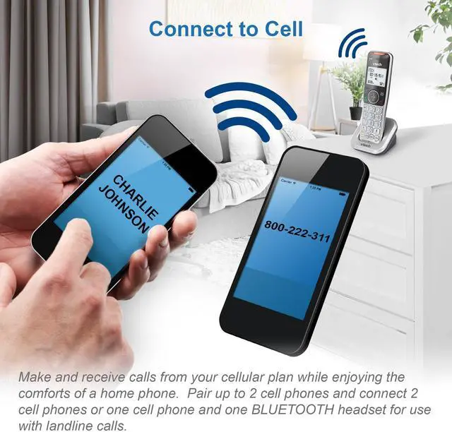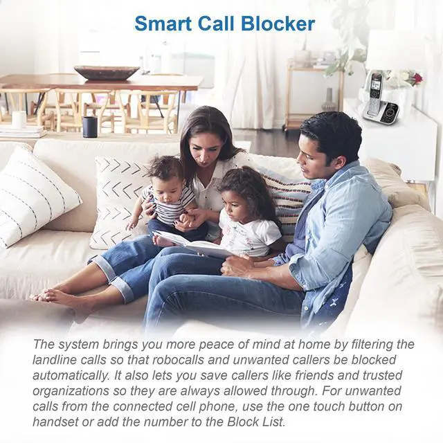With the VTech VS112-3 3-Handset Expandable Cordless Phone featuring, Bluetooth Connect to Cell and Smart Call Blocker, you won't have to worry about unwanted calls waking you up in the middle of the night or tying up the line. Robocalls are automatically blocked from ever ringing througheven the first time. You can also permanently blacklist any number you want with one touch. Bluetooth Connect to Cell technology on this cordless phone system lets you receive cell and/or landline calls from one home phone system. With a touch of a button, enjoy the high-tech benefits your smart phone offers.