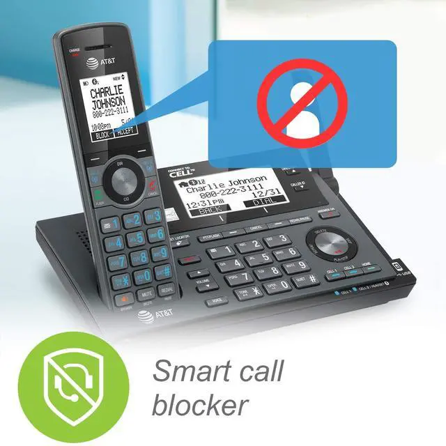 With the AT&T CLP99387 DECT 6.0 Expandable Cordless Phone featuring Bluetooth Connect to Cell and Smart Call Blocker, you won't have to worry about unwanted calls waking you up in the middle of the night or tying up the line. Robocalls are automatically blocked from ever ringing through-even the first time. You can also permanently blacklist any number you want with one touch. Bluetooth Connect to Cell technology on the AT&T CLP99387 DECT 6.0 Expandable Cordless Phone lets you receive cell and/or landline calls from one home phone system. With a touch of a button, enjoy the high-tech benefits your smart phone offers.