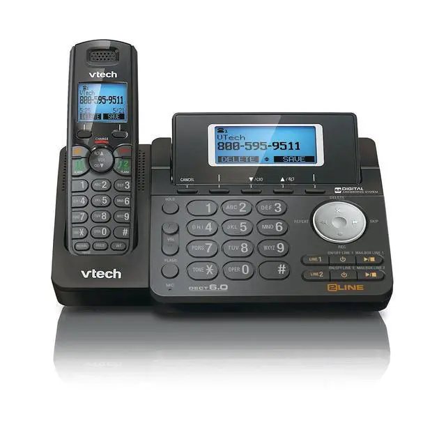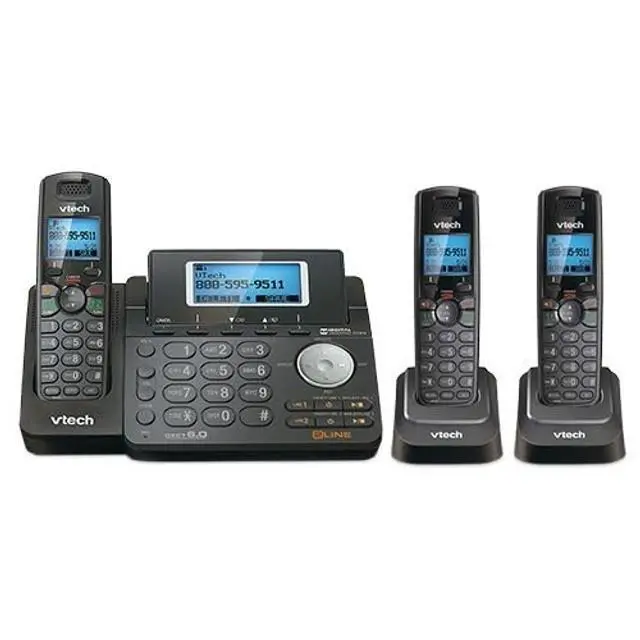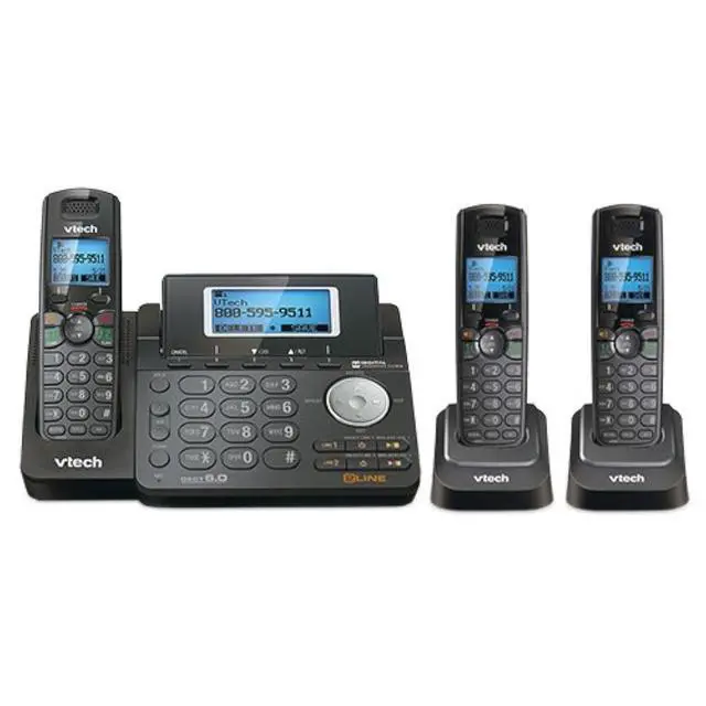 VTech DS6151-11 DECT 6.0 2-Line Expandable Cordless Phone + (2) DS6101-11 Accessory Handset, Black