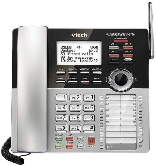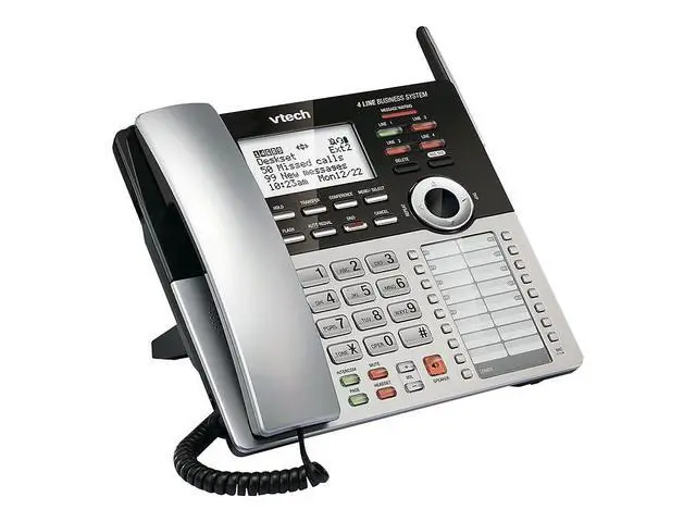 The VTech CM18245 Extension Deskset for the VTech CM18445 Small Business System is an expansion deskset only. It requires the VTech CM18445 main console to operate. The CM18245 uses DECT 6. 0 technology, which provides strong protection against wiretapping and the best call range while not interfering with wireless routers. Plus, it makes installation a breeze. Simply connect the power cord and push the registration button to pair to the main console. The VTech CM18245 Extension Deskset for the VTech CM18445 Small Business System has its own digital answering system with up to 180 shared minutes of incoming messages, outgoing announcements, and memos.