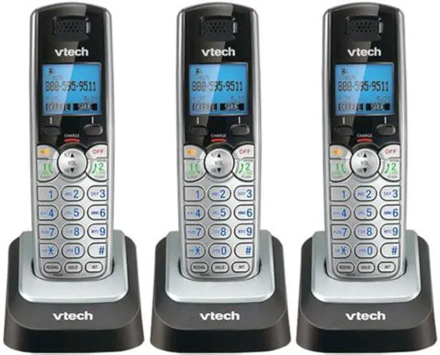 The handset has a backlit display and keypad for easy visibility and use in various lighting conditions. Setting up the DS6101 handset is simple and straightforward. It wirelessly connects to the DS6151 base unit, eliminating the need for additional telephone jacks or cords. The handsets come with rechargeable batteries, and the base unit acts as a charging dock when not in use. Overall, the Vtech DS6101 Two-Line Cordless Accessory Handset for DS6151 (3 Pack) bundle offers an expansion option for the DS6151 phone system, allowing you to add more handsets and extend the reach of your phone system throughout your home or office.