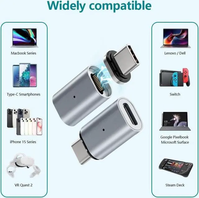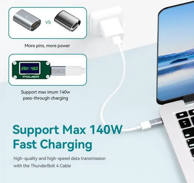 40Gbps Data Transmission 24 Pins type C magnetic connector adapter not only charges your devices but also supports data transfer. 40Gbp/s can easily transfer various file data for you without waiting for a long time. (warm tips: please use the USB4 cable and device with Thunderbolt 4 ports to meet USB4 standard. )