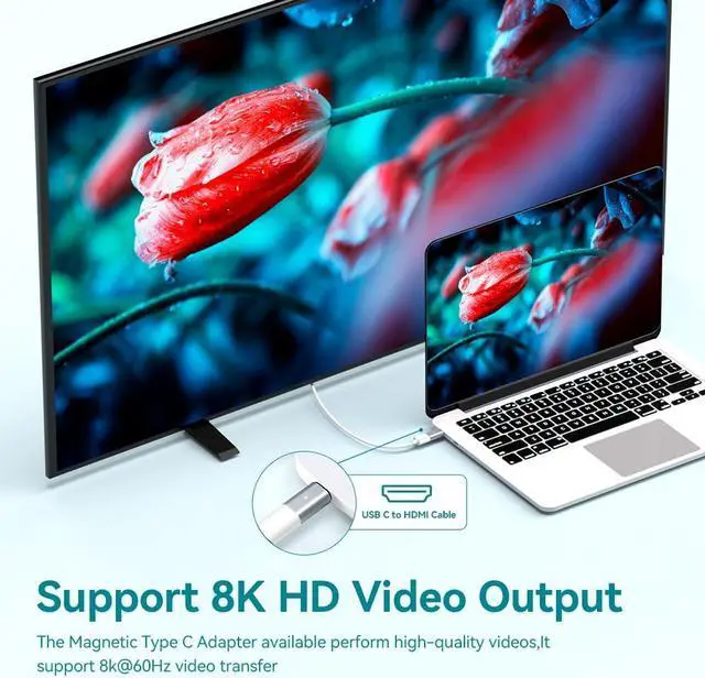 8K@60Hz HD Video Output HESKUL usb-c magnetic adapter straight can project picture/video from your computer or phone to a large-screen, and let you have a high-definition video enjoyment.