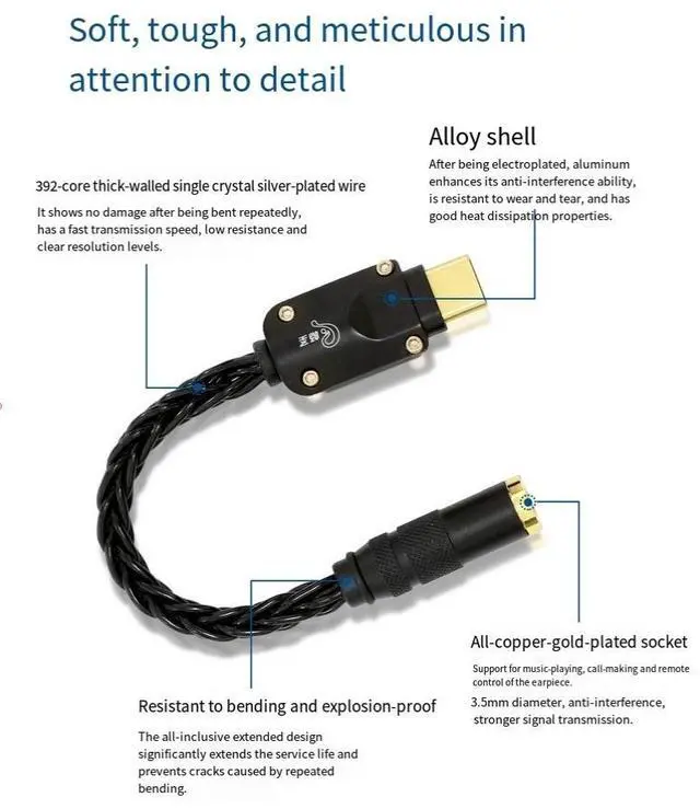 • Type-C to 3.5mm CS46L41 chip DAC decoder ear amplifier adapter HIFI digital audio adapter