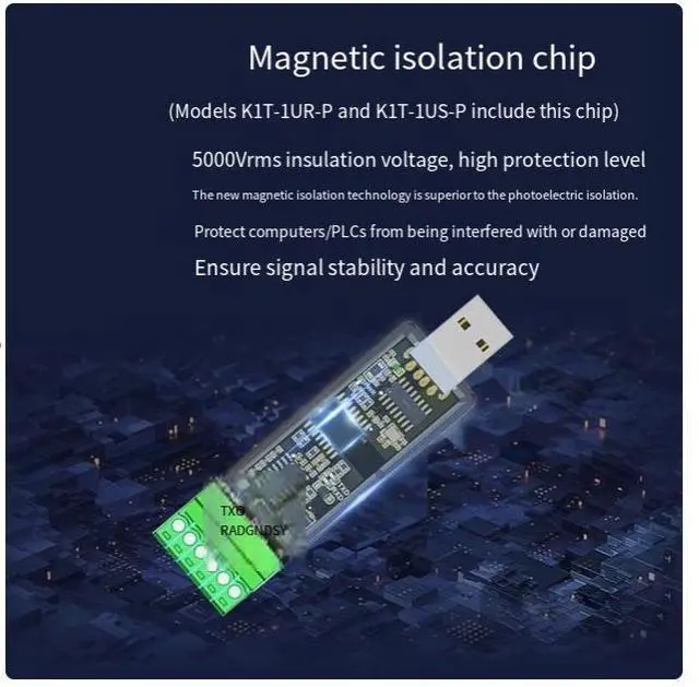 • K1t-1ur-p-isolated USB to 485(high protection) USB to RS485/232 industrial grade TTL serial port module debugging converter