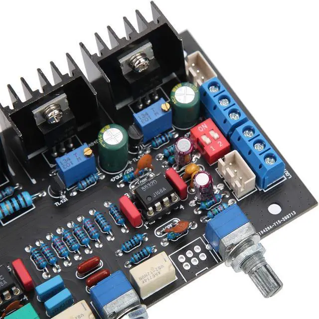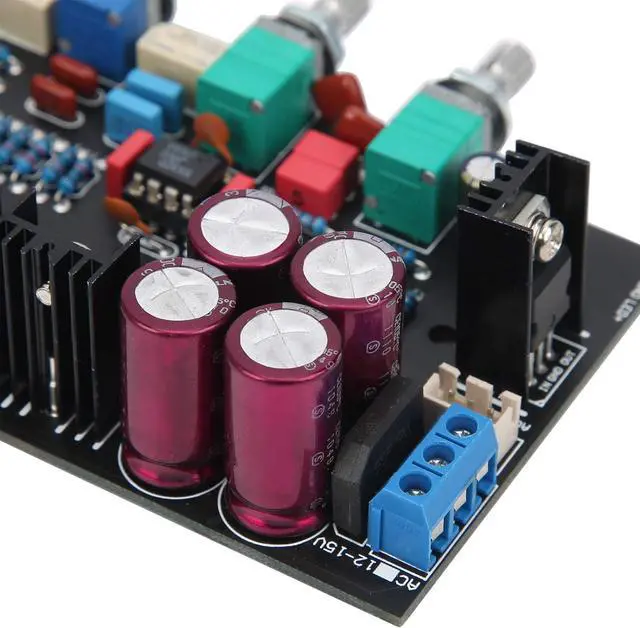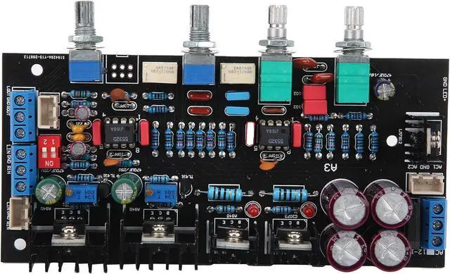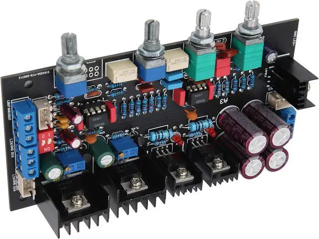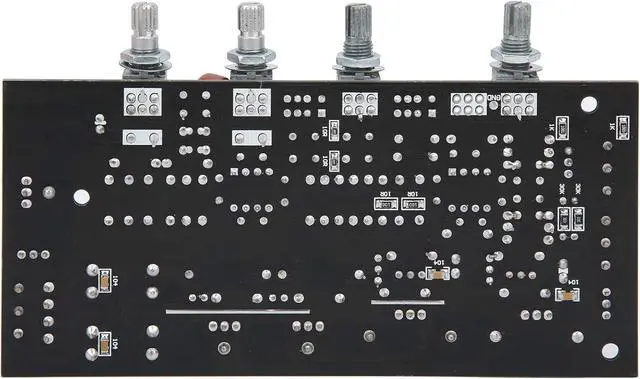 Potentiometer from Left to Right: Treble adjustment-midrange adjustment-bass adjustment-master volume control