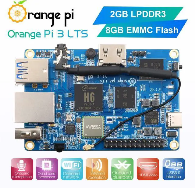 [High Performance Single Board Computer]: Orange Pi 3 LTS is powered by the Allwinner H6 SoC, featuring 2GB of LPDDR3 SDRAM and built-in 8GB eMMC Flash storage. This single-board computer supports Android 9, Ubuntu, and Debian operating systems, making it ideal for a wide range of applications, from multimedia to networking projects.