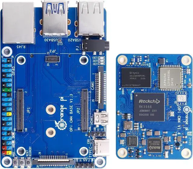 [Compact and Powerful]: Orange Pi Compute Module 4, featuring the Rockchip RK3566 quad-core 64-bit Cortex-A55 processor. Built on a 22nm process, it runs up to 1.8GHz processor. And Orange Pi CM4 is available with four high-performance memory configurations (1GB, 2GB, 4GB, and 8GB) and multiple eMMC flash memory options (8GB, 32GB and 64GB).