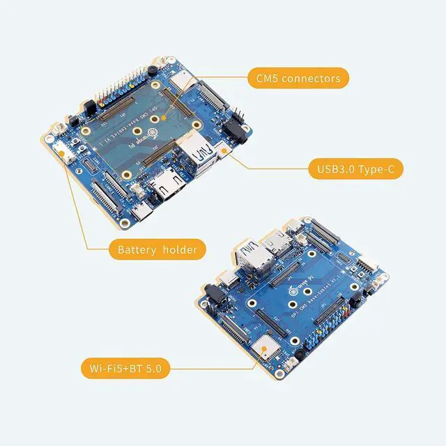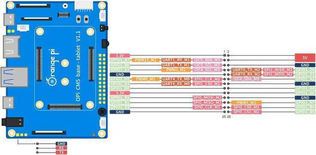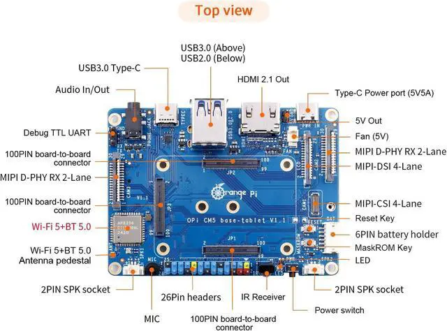 [Orange Pi CM5 Tablet Base Board]: This official base board is designed for seamless integration with the Orange Pi CM5 core board, providing a versatile platform for development or as an embedded solution in end products.