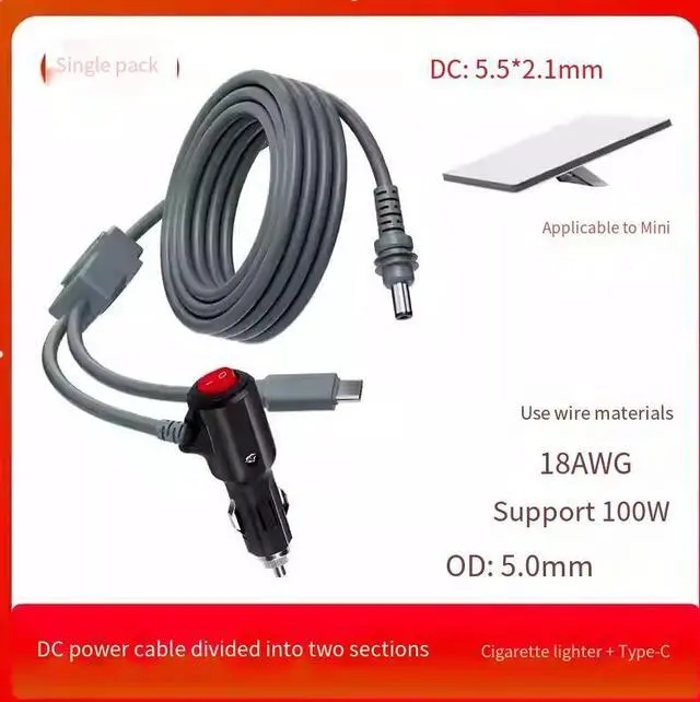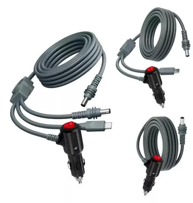 ENFAIN 100W mini DC to cigarette lighter power cord with switch and three-in-one DC to Type-C car charger connection cable DC-Cigarette lighter+Type-c 2M