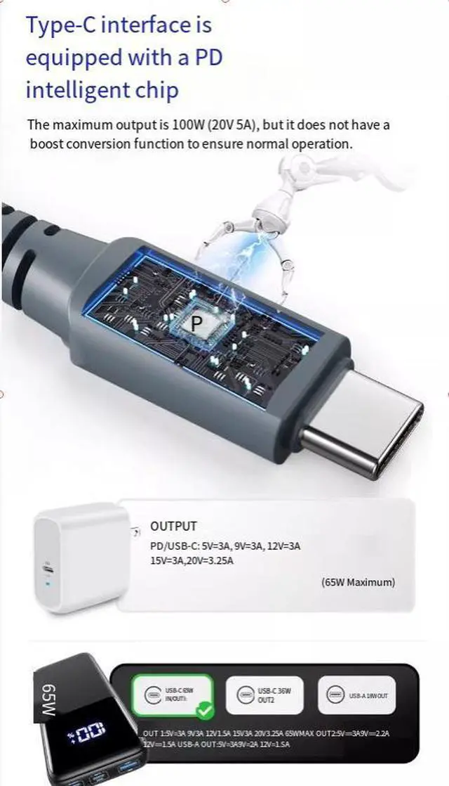 • 3-in-1 Functionality DC to Type-C, compatible with multiple devices.