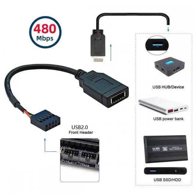 The compact adapter can be inserted directly and requires no additional attachments. Converter plug-in for the mainboard, Fits into any USB 2.0 header.