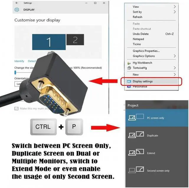 This VGA cable features male-male connectors, making it compatible with a wide range of devices that use VGA ports. Used to extend the display to connect to a computer, LCD TV, projector.