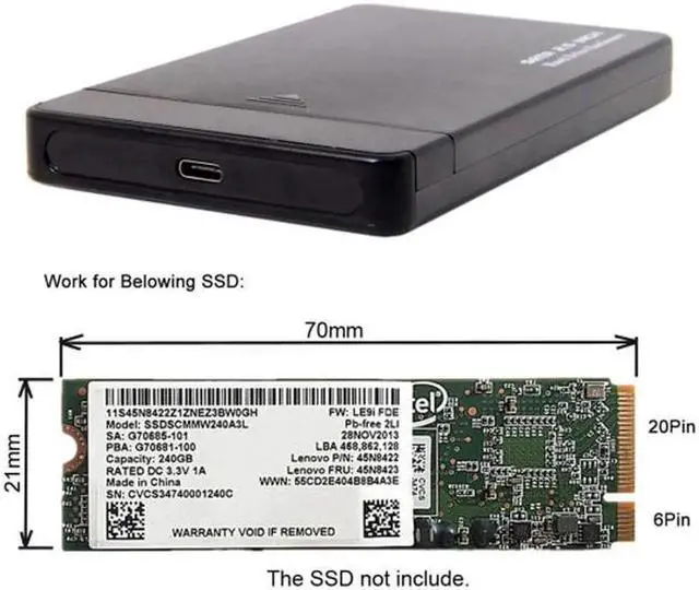 • USB-C Type-C to 20+6Pin SATA SSD Hard Disk Case Enclosure For Thinkpad X1 Carbon SSD