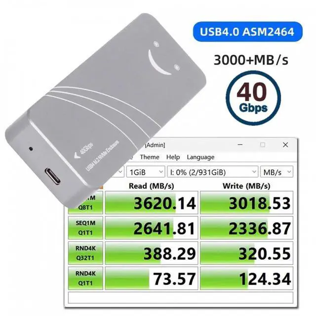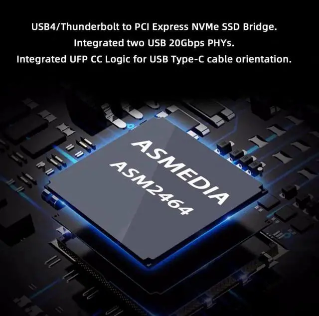 The ASM2464 chipset NVMe Enclosure 40G transforms your M. 2 NVMe SSD into a compact and portable mobile hard drive enclosure. It features a USB 4.0 Type-C output interface, supporting a maximum transmission speed of up to 40Gbps. Equipped with the latest ASM2464 chip, it is compatible with Thunderbolt3/4 and supports PCIe and USB Dual Tunnels.