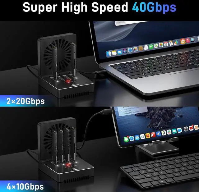 Super Transfer SpeedFIDECO NVMe Cloner Dock adopts USB4 standard for the speed of 4x 10Gbps, 2x 20Gbps. It can support data read or write for 4 SSDs simultaneously. You do not need to wait for the data transfer any longer, and it can definitely save much time for you.