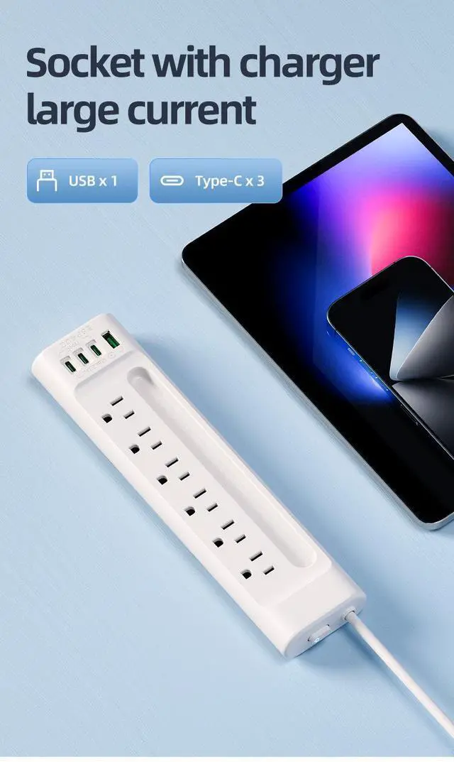 Multi-Device Charging: Equipped with 1 USB port and 3 Type-C ports for smartphones, tablets, and other electronics