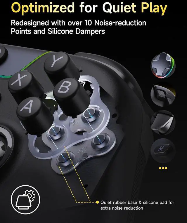 Quiet-Press Buttons Full-button structure rebuilt with silicone dampers for ultra-quiet operation. Perfect for late-night gaming on your pc controller setup without disturbing family, roommates, or neighbors.